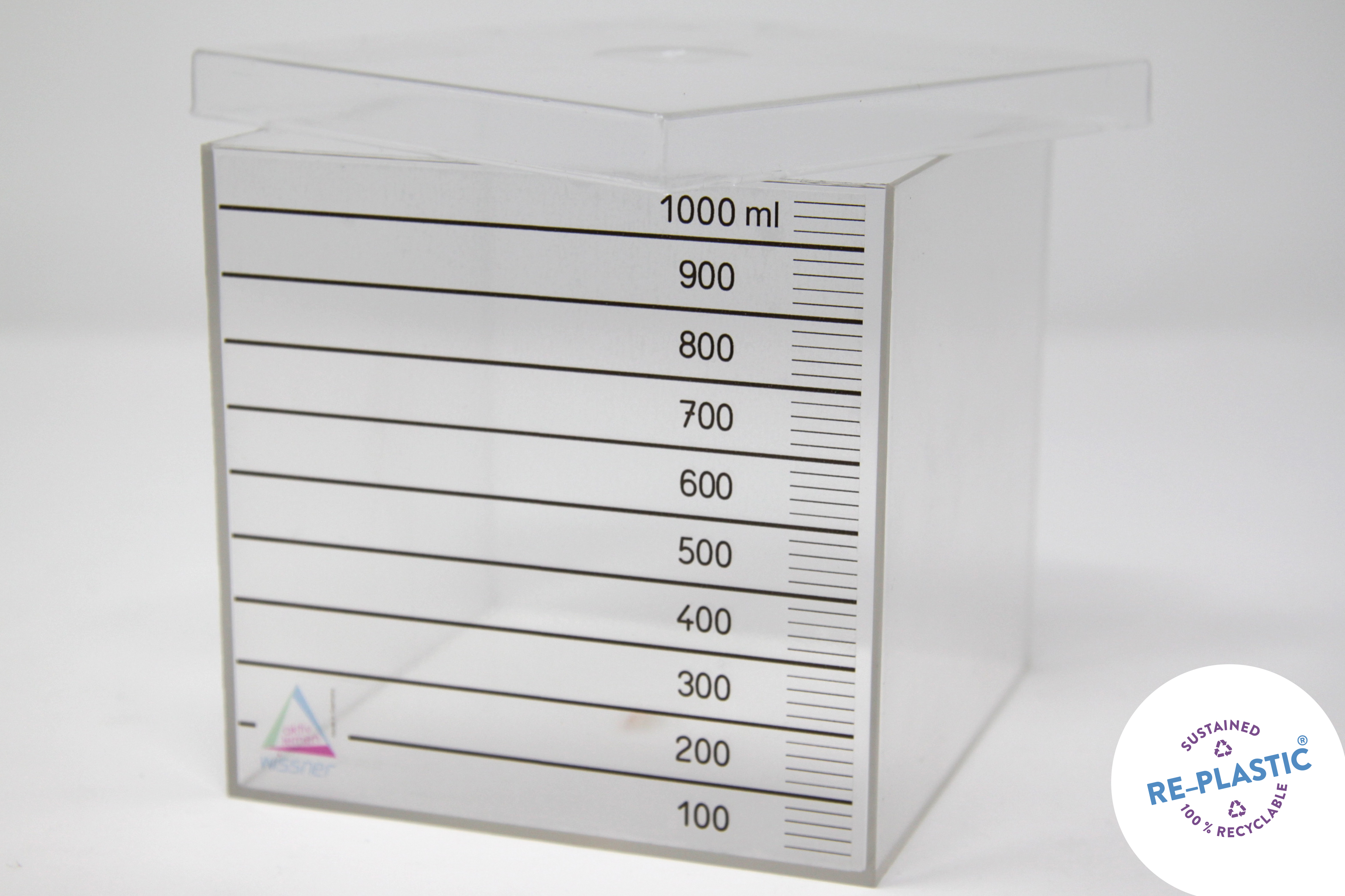 Decimeter kubický - plastová kocka s vekom - s objemom 1l a stranami 10x10x10cm.