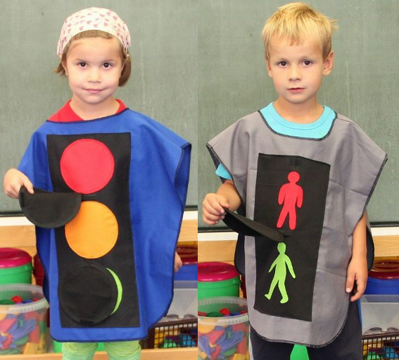 Vestička s aplikáciou semaforu pre autá alebo pre chodcov. Farby na semaforoch deti ľahko menia samé postupným odkrývaním a zakrývaním farebných políčok. Základný materiál je 100% bavlnená látka. Vestička je v univerzálnej veľkosti. Predný a zadný diel je spojený gumou. Látkové zakrývacie kolieska majú navyše našité suché zipsy pre jednoduché uchytenie. Možno prať pri teplote do 30° C. Vhodné pre deti od 3 rokov!